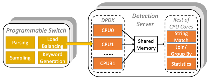 Defending against Distributed Denial-of-Service (DDoS) attacks is a critical priority for cloud providers, who must manage ever-growing volumes of both benign and malicious traffic. While state-of-the-art DDoS detection systems leverage programmable devices to process traffic at hundreds of Gbps to Tbps on a single machine, large-scale cloud providers often handle traffic at scales approaching 100 Tbps. This massive volume – two orders of magnitude higher than the traffic handled by existing systems – motivates us to implement distributed processing across multiple servers, where new challenges are present. Specifically, naive load-balancing strategies lead to imbalanced traffic distribution and severe performance bottlenecks, while function offloading to programmable devices must balance flexibility and adaptability. In this paper, we present Canopy, a scalable DDoS detection system designed to overcome these challenges. Canopy features a dynamic load-balancing mechanism that adapts to fluctuating traffic patterns, ensuring balanced distribution across detection servers despite the mix of mice and elephant flows. Additionally, it employs a traffic compression technique at the programmable switch to significantly reduce per-server workload. These innovations enable Canopy to scale to over 100,Tbps in real-world deployments. Successfully deployed in production, Canopy has demonstrated its effectiveness in mitigating large-scale DDoS attacks.