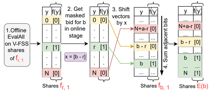 We propose Obsidian, which enables secure Vickrey auctions with three ideas: a new MPC-friendly encoding scheme that decouples bid values from bidders’ identities; a novel use of function secret sharing to shift the cost of encoding validation to an offline phase; and a lightweight ring signature scheme to anonymously verify bidders. We show that Obsidian significantly outperforms generic MPC and homomorphic encryption approaches—by orders of magnitude—and even surpasses Addax, a system tailored to ad auctions, despite Addax assuming a weaker (covert) threat model and leaking more information.